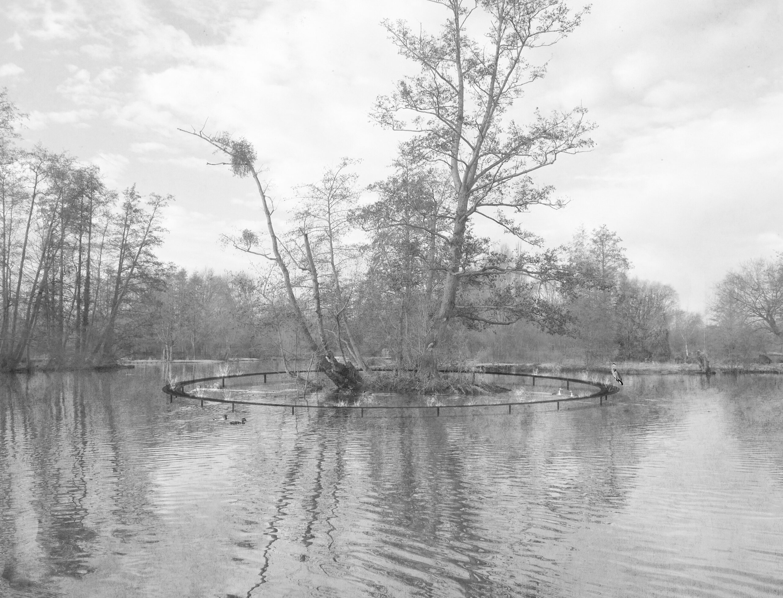 The installation protects the small island territory: it acts as a pre-barrier, slowing the erosion of the banks and helping retain the soil. Over time, it becomes a modest piece of landscape — an extension of the island’s environment and a floating object between the aquatic and terrestrial worlds. For visitors, Isola encourages a curious approach to the isolated island without stepping onto its ground.